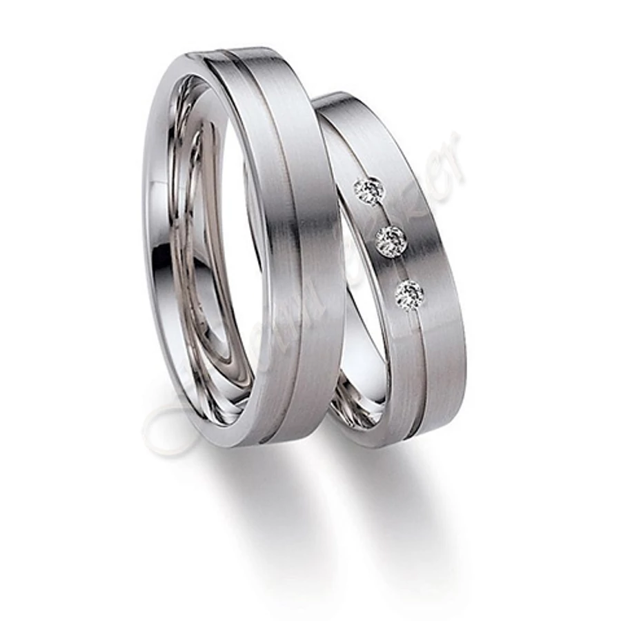 A női karikagyűrű díszítése : matt, harmadánál fényes vésett vonal, 3 db cirkiónia kő