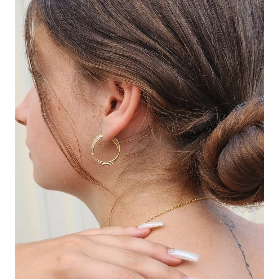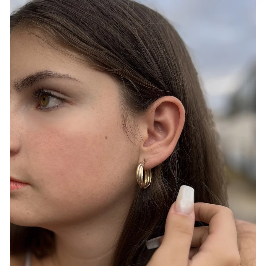 Ez az arany fonott karika fülbevaló elengedhetetlen kelléke egy hölgy toalettjének, mindig feltűnő és sosem megy ki a divatból, A fülbevaló közepes méretű, átmérője : 23 mm - Sárga arany fülbevalók - Arany fonott karika fülbevaló, arany ékszer |