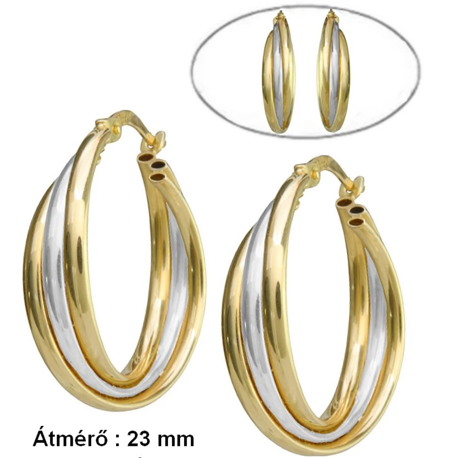 A sárga arany fülbevaló külső átmérője : 23 mm