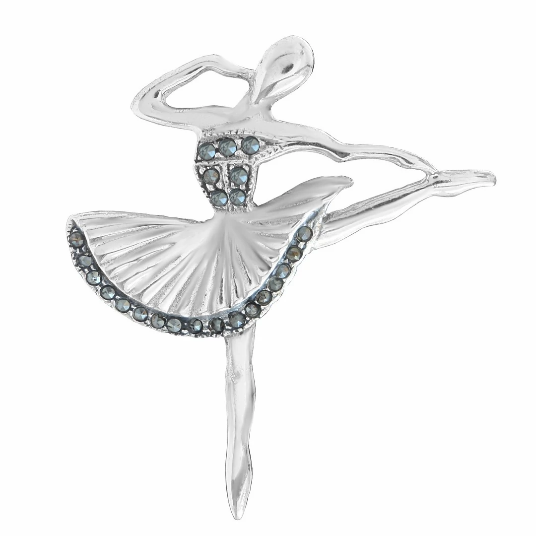 Balerina kitűző markazittal, ezüst bross