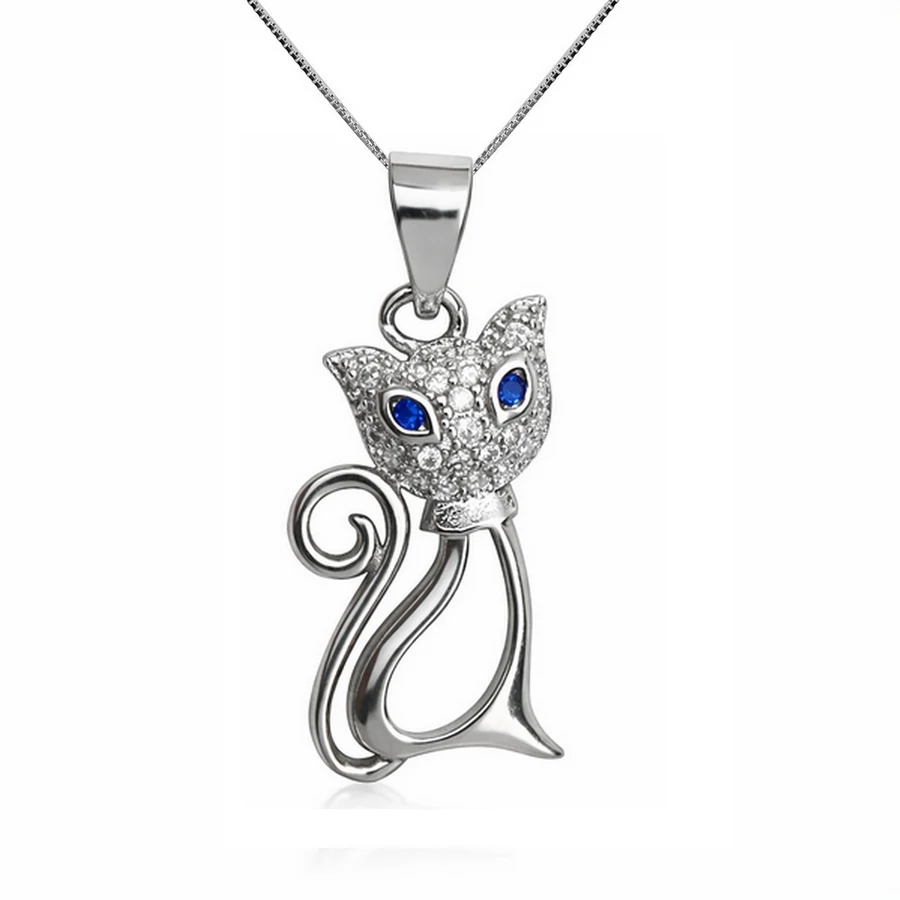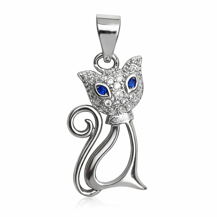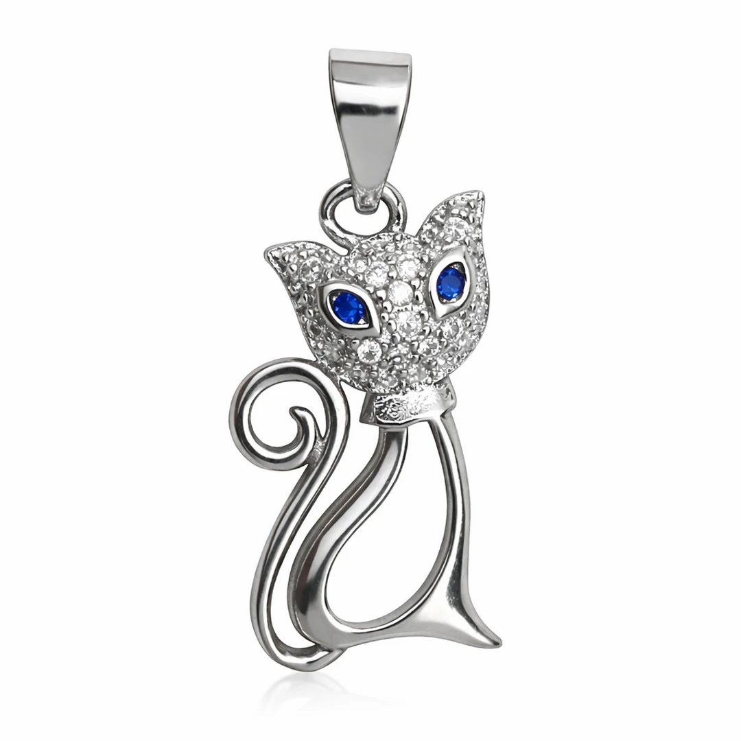 Aranyos csillogó cica medál, akár gyerekeknek, akár azoknak a felnőtteknek, akik a macska szimbólum jelentése miatt választják ezt az ékszert. - Ajándék ötletek - Csillogó cica medál, ezüst ékszer |