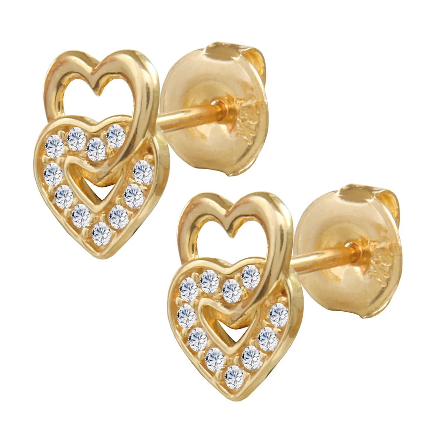 Az arany dupla szív fülbevaló díszítése : egy fényes és egy csillogó cirkónia kövekkel díszített szív forma