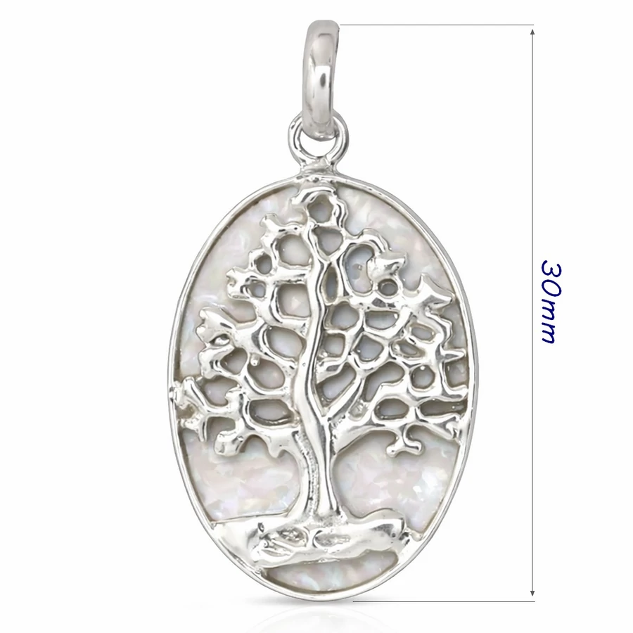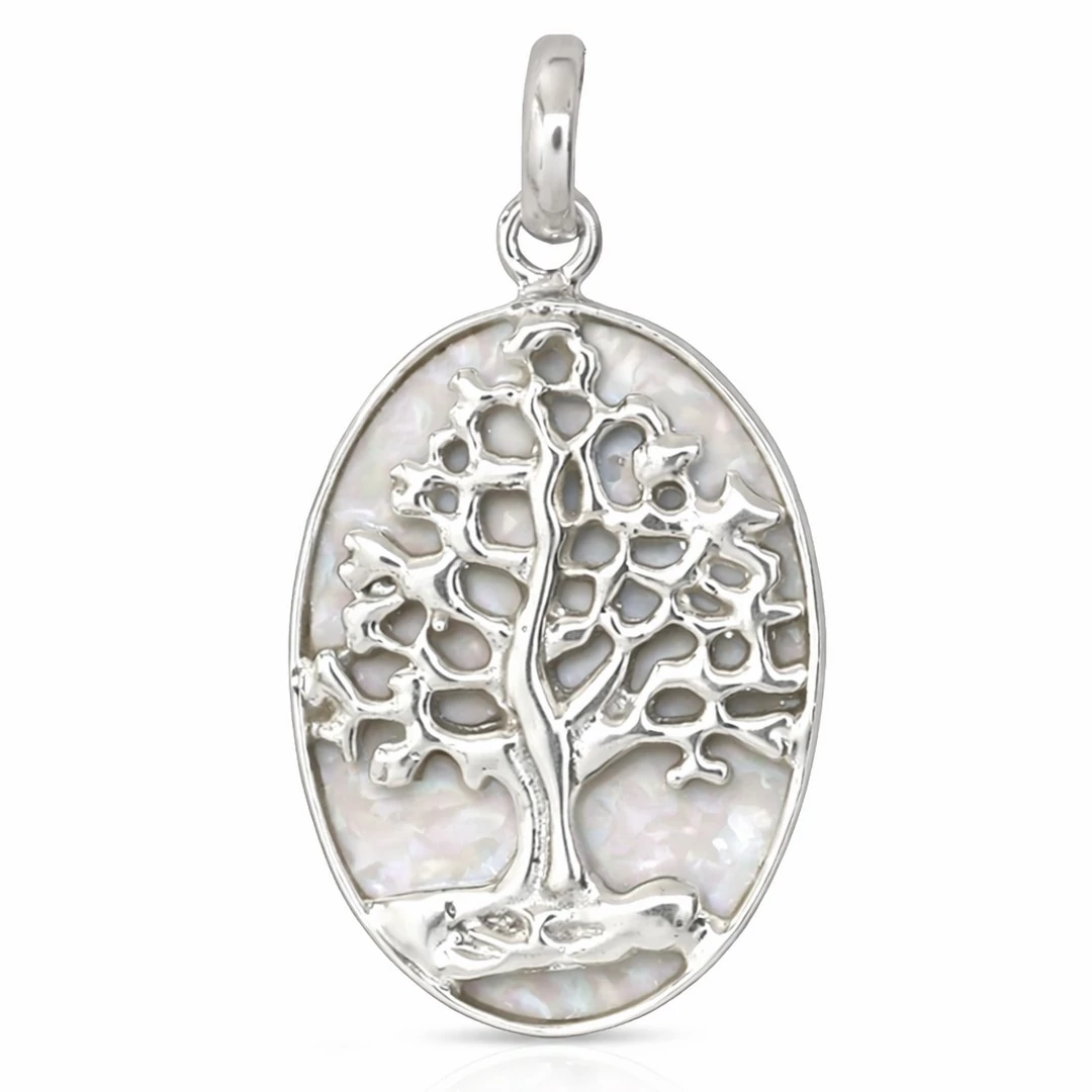 Életfa mintás, gyöngyház betétes medál, ezüst ékszer