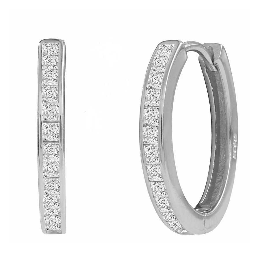 Az ezüst fülbevaló díszítése : a fülbevaló elején fehér négyszögletes cirkónia kövek foglalva.