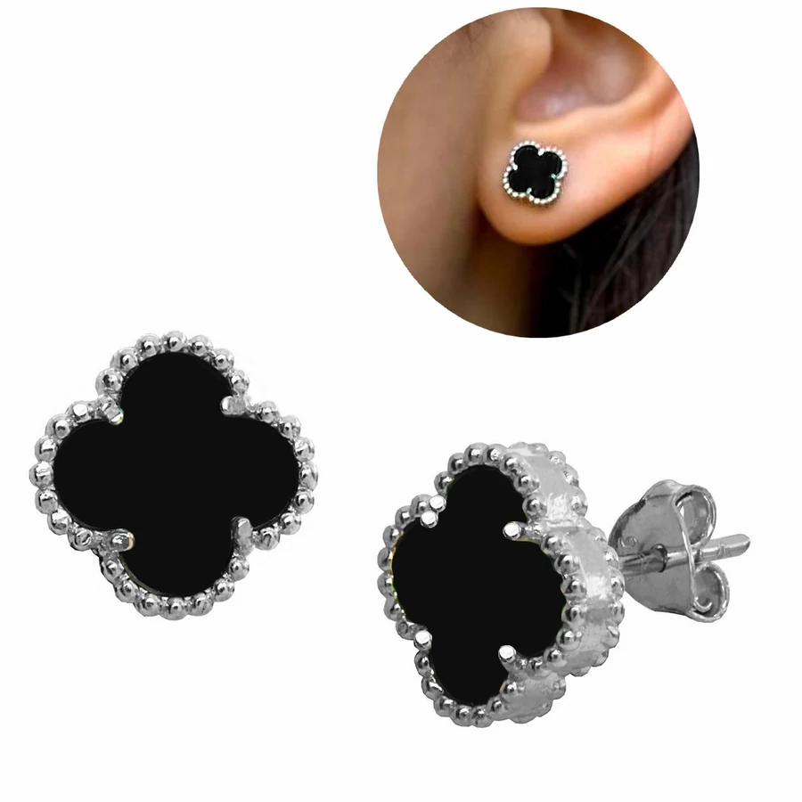 Négylevelű lóhere mintájú fekete köves fülbevalónk kedvelt szerencsehozó kabala ékszer. Amellett, hogy fiatalos és divatos, a zöld szín jótékony feszültség csökkentő, nyugtató hatását is magában hordozza.