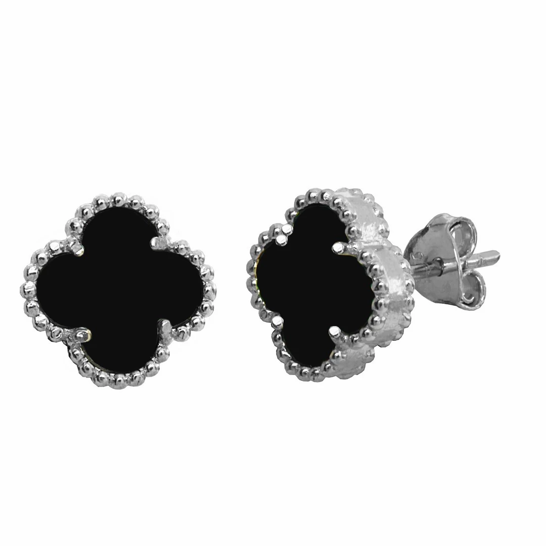 - Női ezüst fülbevalók - Fekete köves négylevelű lóhere fülbevaló, ezüst ékszer
