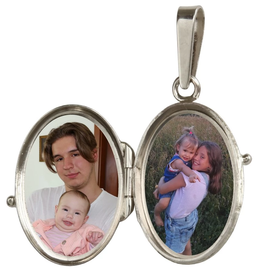 Ez a fehér arany, ovális formájú fényképtartó, nyitható medál, melynek szépsége az egyszerűségében rejlik, tökéletes ajándék lehet hölgyeknek és uraknak egyaránt - Ajándék ötletek - Fényképtartó, nyitható ovális medál, fehér arany ékszer |