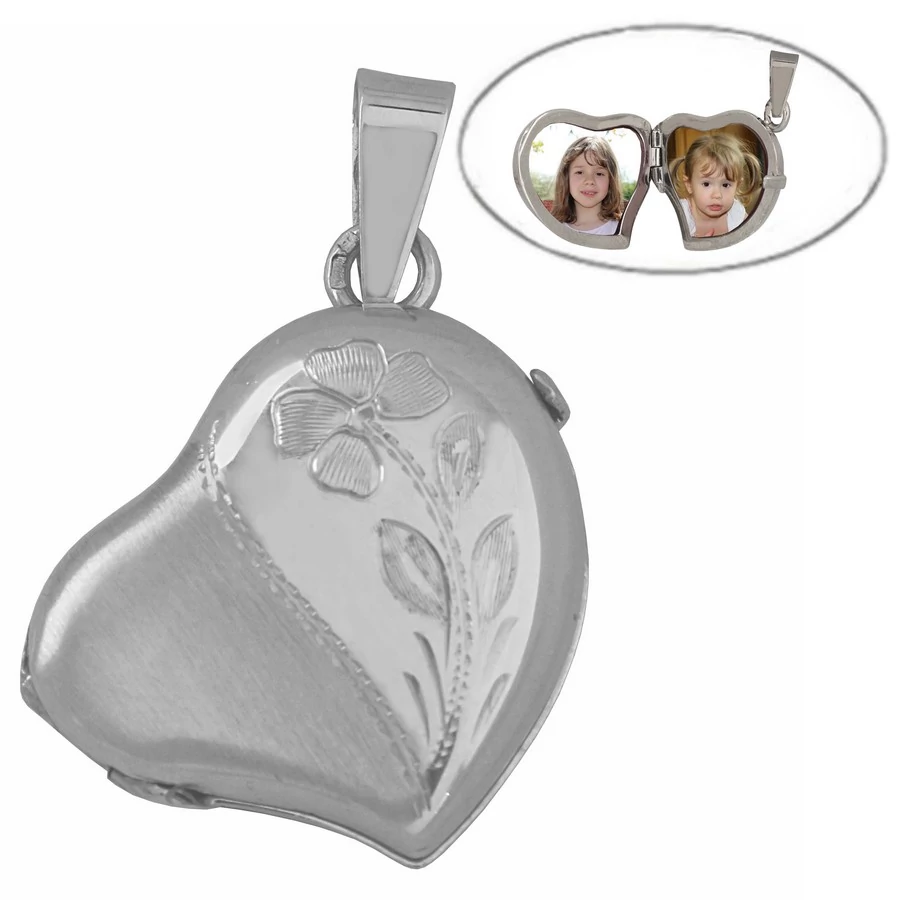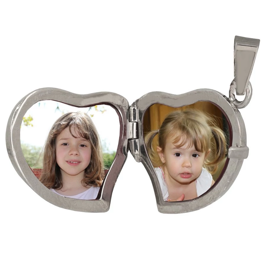 Fényképtartó nyitható szív medál, fehér arany ékszer