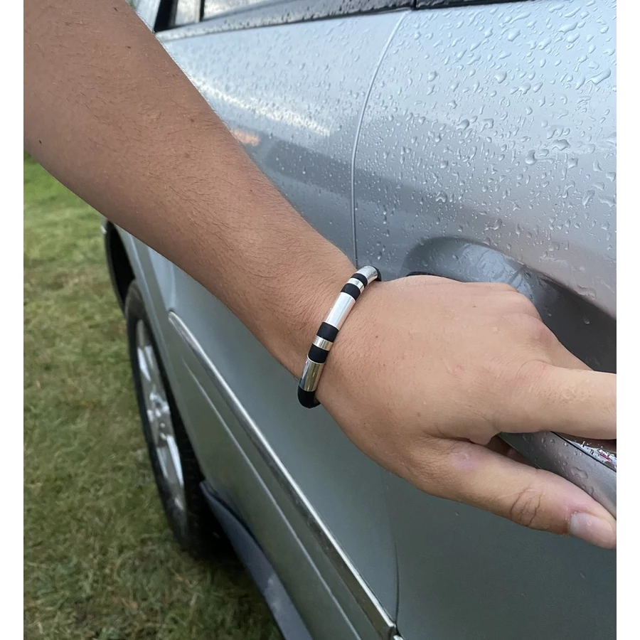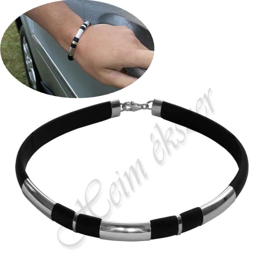 Ha masszív, mutatós, vagány ezüst ékszert keresel az erősebbik nem számára, akkor tökéletes választás ez a kaucsukkal és ezüsttel díszített karkötő, mely a sportos hétköznapi viselet nagyszerű kiegészítője lehet. - Ajándék ötletek - Férfi kaucsuk ezüst karkötő féldomború, ezüst ékszer több méretben |