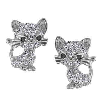 Csillogó cica fülbevaló, ezüst ékszer