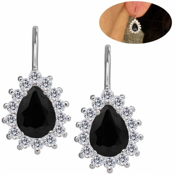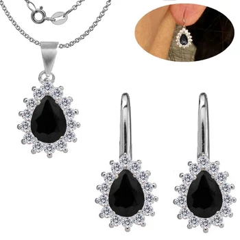 Fekete csepp köves patent záras fülbevaló, medál, nyaklánc szett, ezüst ékszer