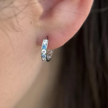 Karika fülbevaló kék fehér köves nem bébi, fehér arany ékszer 11 mm átmerő