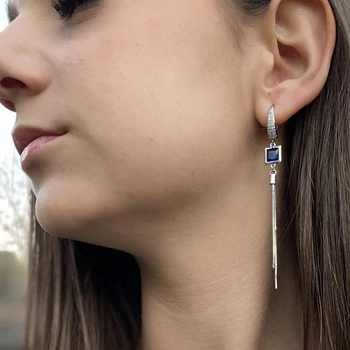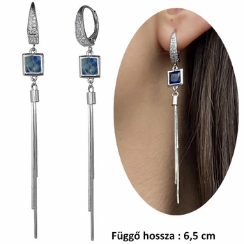 Kék köves hosszú lógós fülbevaló, ezüst ékszer