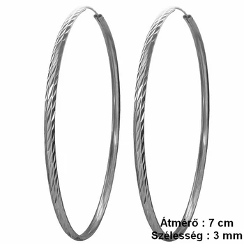 Karika fülbevaló 7 cm átmérőjű, csillogó ezüst ékszer.