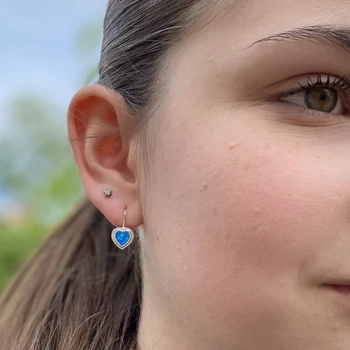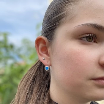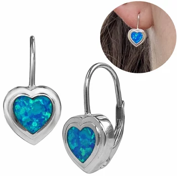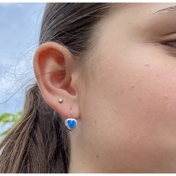 Szív alakú opál köves erős patent záras fulbevaló, ezüst ékszer