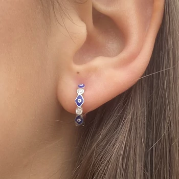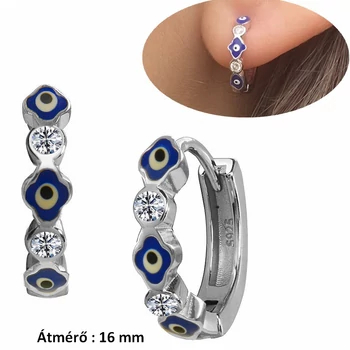 Nazar Allah szem mintájú karika fülbevaló, ezüst ékszer