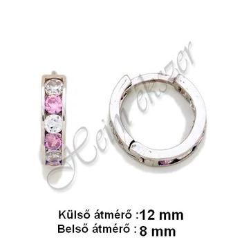 Gyermek karikafülbevaló rózsaszín fehér köves, fehér arany ékszer