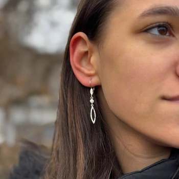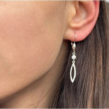 Lógós csillogó köves fülbevaló, fehér arany ékszer