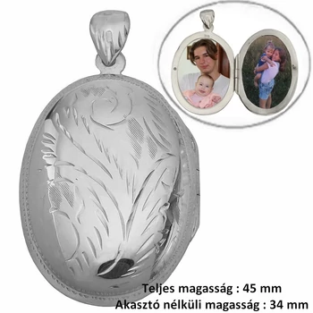 Fényképtartó nyitható medál, ovális NAGY, ezüst ékszer