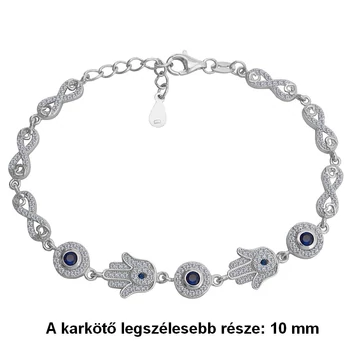 Végtelen jeles Fatima keze karkötő, ezüst ékszer.