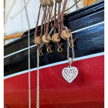 Barokk mintás szív medál, ezüst ékszer