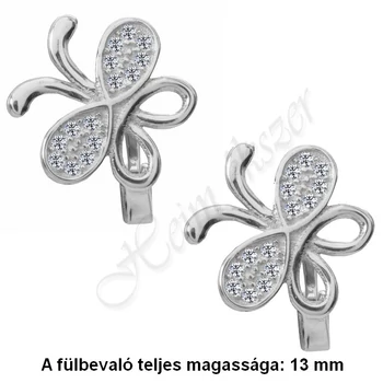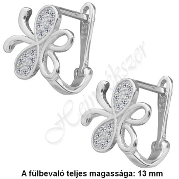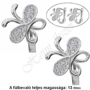 Pillangós patent záras fülbevaló, ezüst ékszer