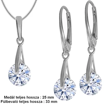 Csillogó köves fülbevaló medál nyaklánc szett, ezüst ékszer