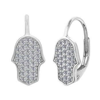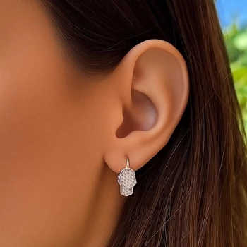 Fatima keze fülbevaló patent zárral, ezüst ékszer