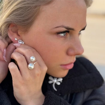 Mutatós nagy gyöngyös ezüst gyűrű.