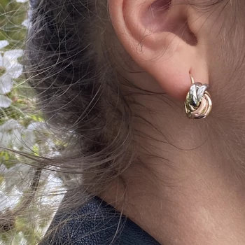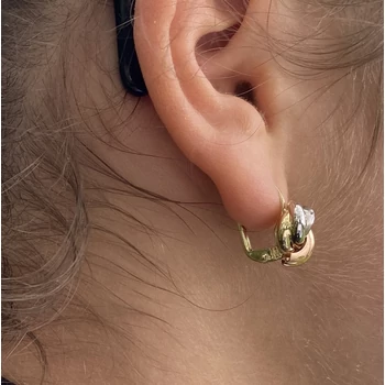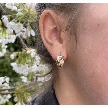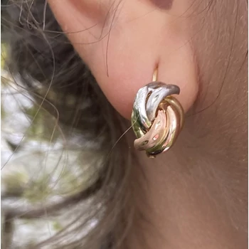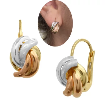 Fonott arany fülbevaló, három színű aranyból, arany ékszer