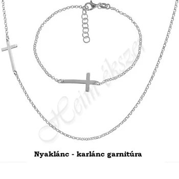 Ezüst nyaklánc, karlánc garnitúra kereszt medállal, ezüst ékszer