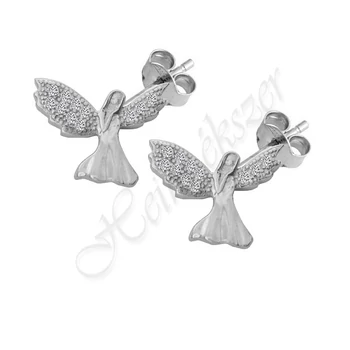 Angyalka ezüst szárnyain kövekkel díszített fülbevaló, ezüst ékszer.