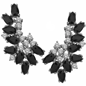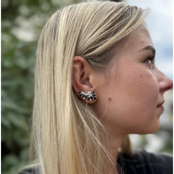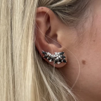 Mutatós,fül ívére simuló, fekete-fehér köves fülékszer, ezüst fülbevaló