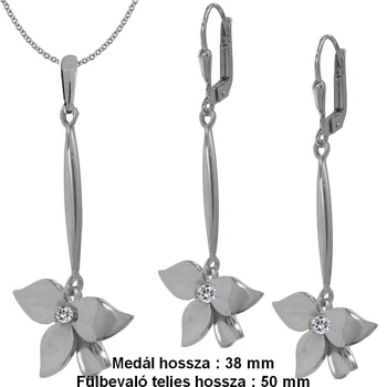 Lógós virágos fülbevaló medál nyaklánc ékszergarnitúra, ezüst ékszer