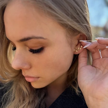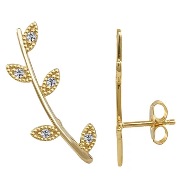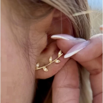 Levél mintás fül ívére simuló fülbevaló, arany fülékszer