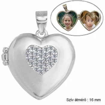 Gyönyörű fényképtartó nyitható szív medál, ezüst ékszer