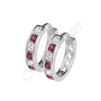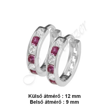 Karika fülbevaló gyermek piros - fehér köves, ezüst ékszer
