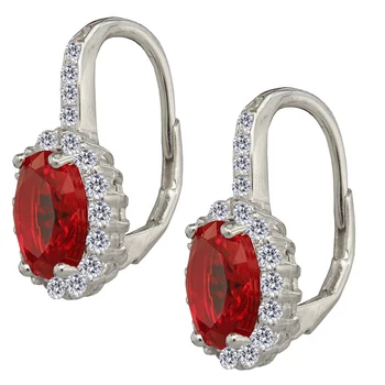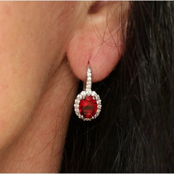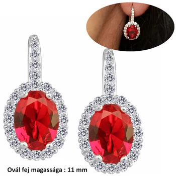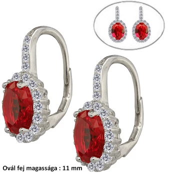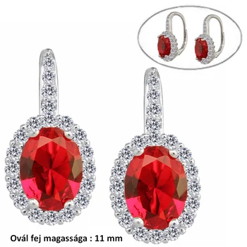 Piros ovál köves patent záras fülbevaló, ezüst ékszer