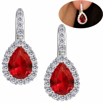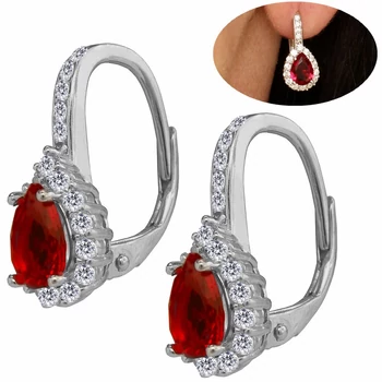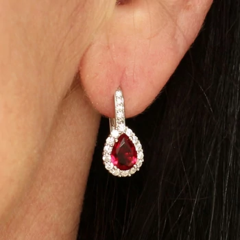 Rubin piros csepp köves fülbevaló, ezüst ékszer