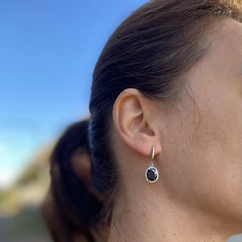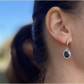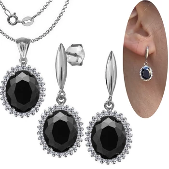 Fekete köves lógós fülbevaló, medál, nyaklánc ékszerszett, ezüst ékszer