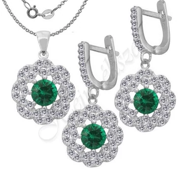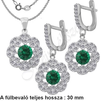 Smaragd köves fülbevaló, medál, nyaklánc, ezüst ékszer több hosszban
