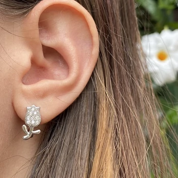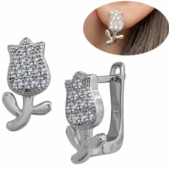 Tulipán virág mintájú, francia záras fülbevaló, ezüst ékszer