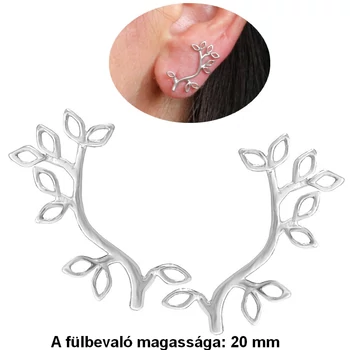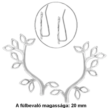 Levél mintás íves fülbevaló, ezüst fülékszer
