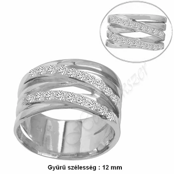 Mutatós, széles csillogó gyűrű, ezüst ékszer minden méretben