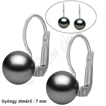 Tahiti gyöngy fülbevaló valódi édesvízi gyönggyel, ezüst ékszer ( 7 mm )