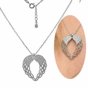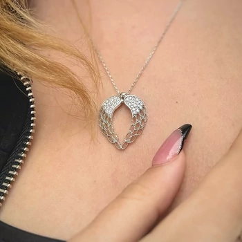 Angyalszárny szív medál nyaklánccal, védelmező ezüst ékszer
