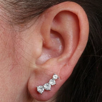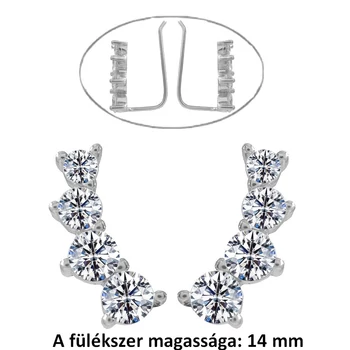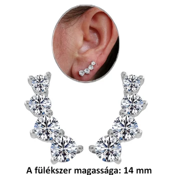 Csillogó fül ívére simuló fülékszer, kövekkel díszített ezüst fülbevaló