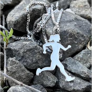 Futó nő medál, ezüst ékszer.