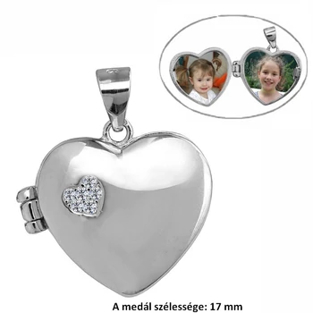 Fényképtartó nyitható szív medál, ezüst ékszer