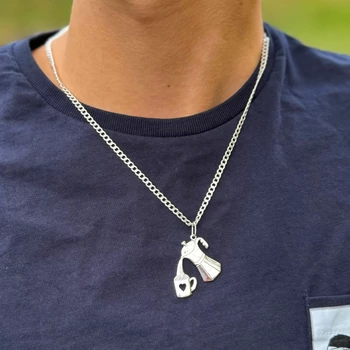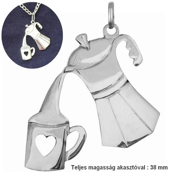 Kotyogós kávéfőző csészével, mokka főző, ezüst ékszer ( nagy )